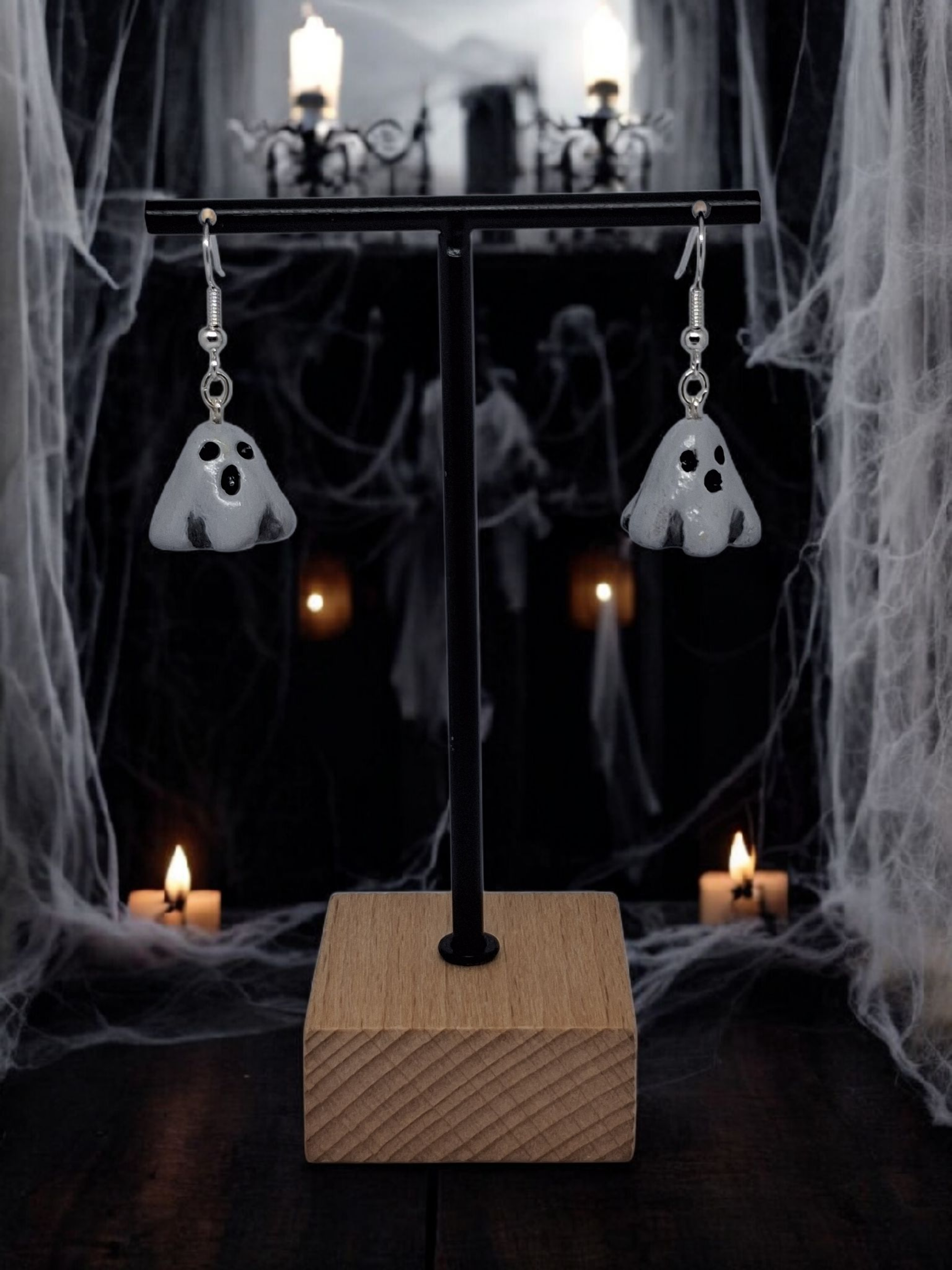 Bootiful little grey ghost earrings. Handmade and lightweight, perfect for any Halloween outfit!