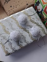 Add a touch of cosy elegance to your holiday décor with these handmade white and silver pom-pom Christmas ornaments. Each ornament is crafted with snowy white yarn and delicate metallic accents, creating the perfect blend of winter warmth and festive sparkle.