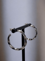 Silver hoops with a twist! These mid size hoops are made from 100% recycled sterling silver.